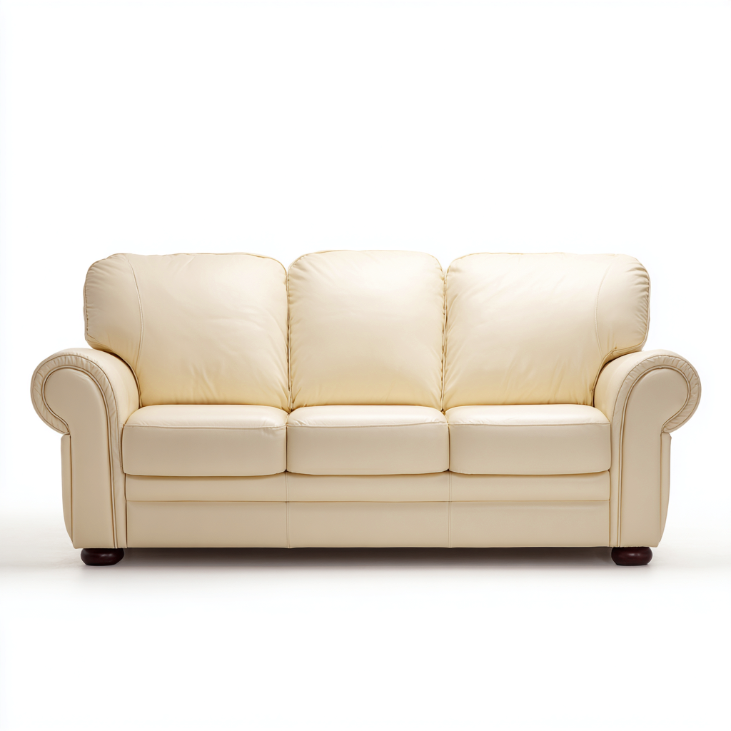 Divano lineare - rivestimento in pelle 210x90x95 cm - beige - stile classico per soggiorno