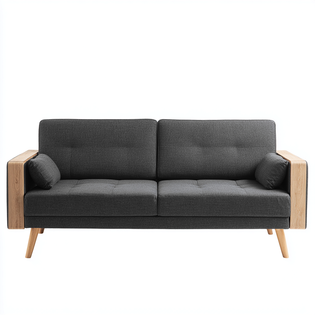 Divano lineare - tessuto-legno - 150x82x86 cm - grigio chiaro - design moderno