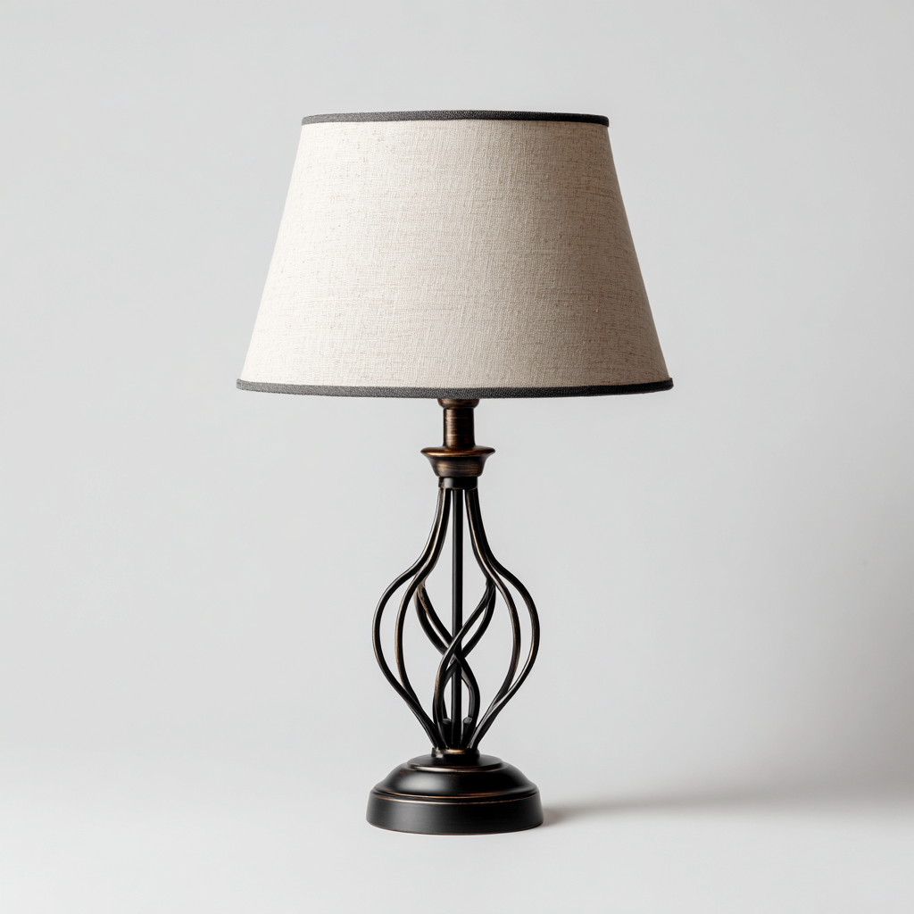 Lampada da tavolo metallo con paralume in tessuto 26x26x50 cm - beige e bronzo antico - illuminazione interna - design classico