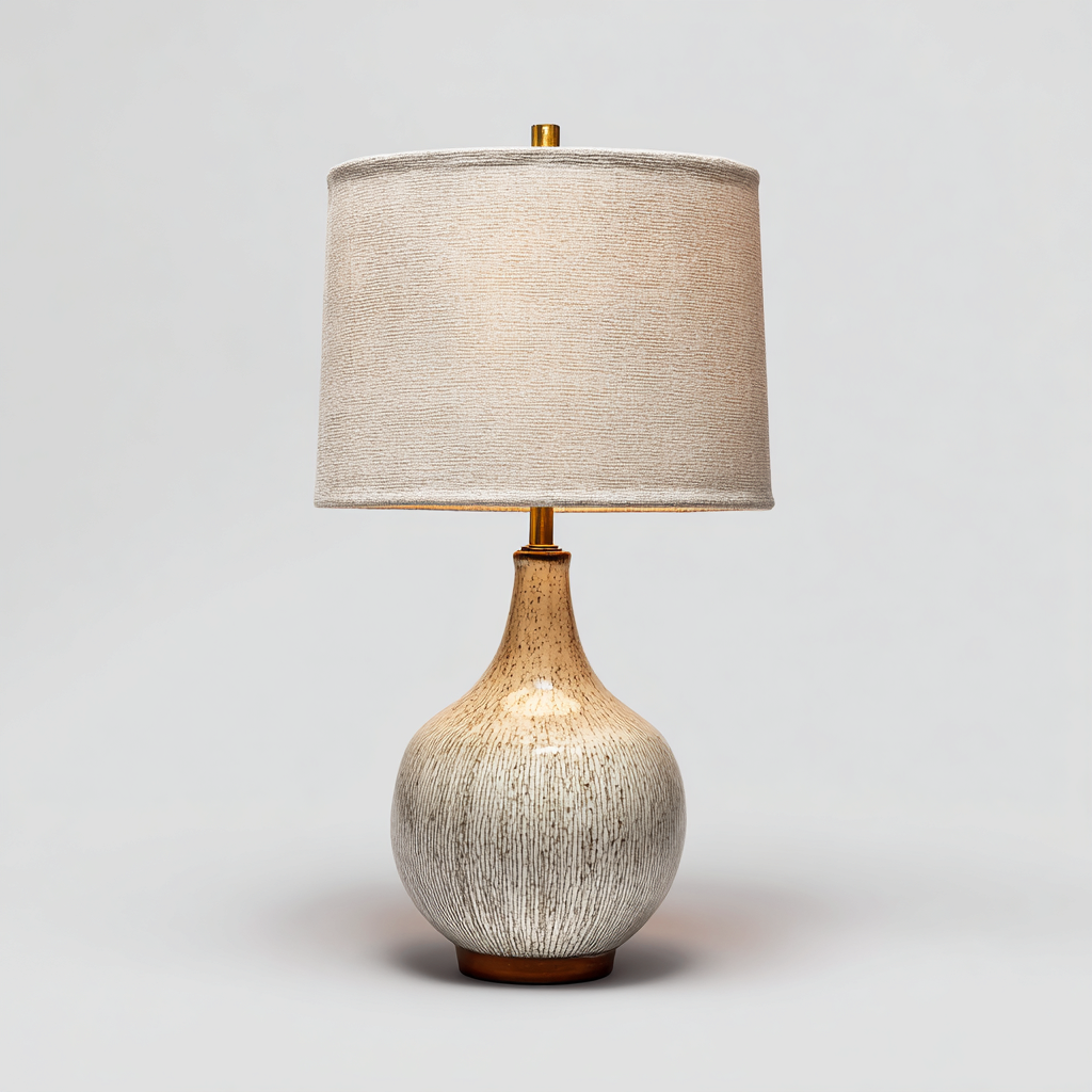 Lampada da tavolo in ceramica con paralume in tessuto 28x28x55 cm - bianco crema - per soggiorno e camera da letto - design moderno