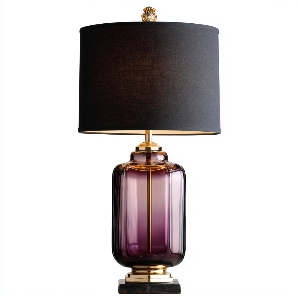 Lampada da tavolo in vetro con paralume in tessuto 34x34x72 cm - viola - nero - oro - per soggiorno e camera da letto - design moderno