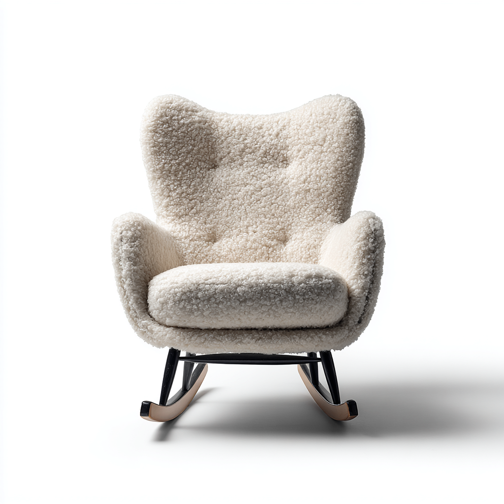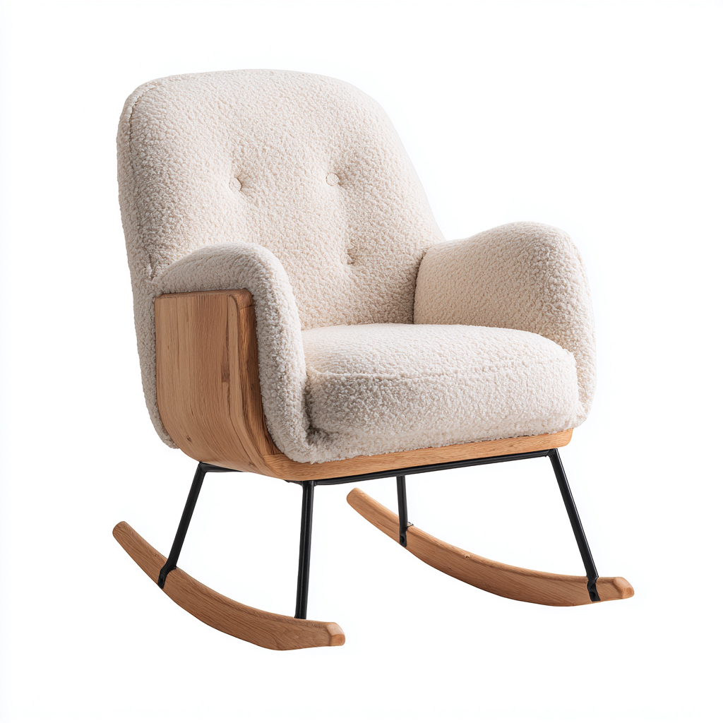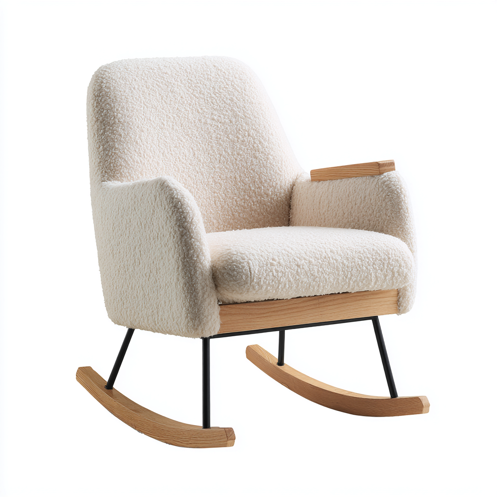 Sedia a dondolo - tessuto bouclé-legno 65x70x75 cm - bianco - per soggiorno - design moderno