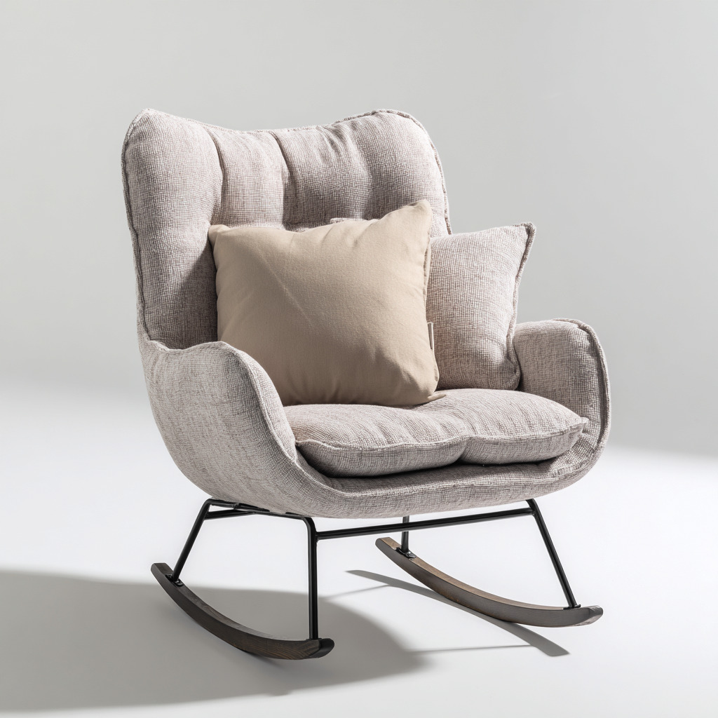 Sedia a dondolo imbottita in tessuto 85x82x92 cm - beige - design moderno - adatta per soggiorno