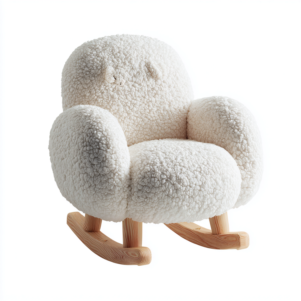 Sedia a dondolo in pelliccia sintetica e legno 75x80x95 cm - beige-nero - design moderno per soggiorno