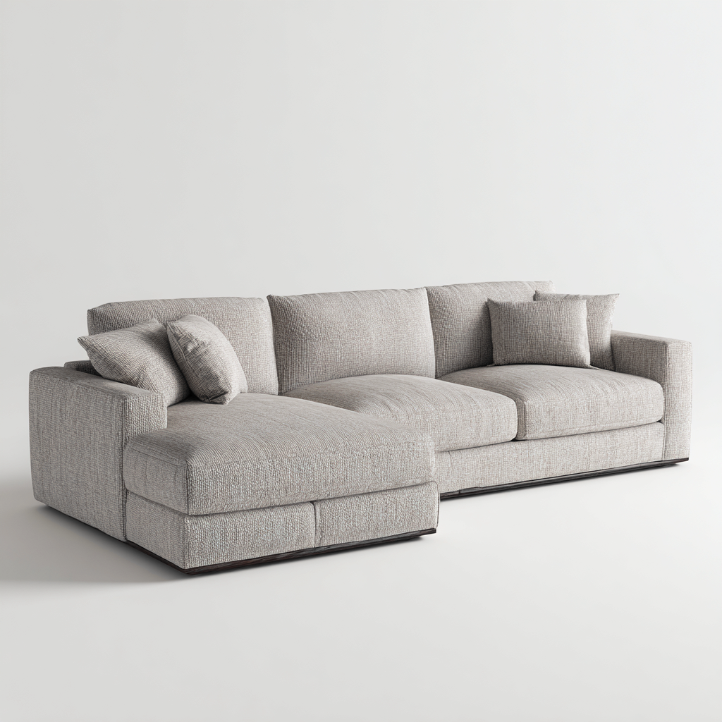 La seduta profonda e imbottita offre un comfort elevato durante il relax. Il design angolare consente una gestione efficiente dello spazio nel soggiorno mantenendo uno stile moderno.