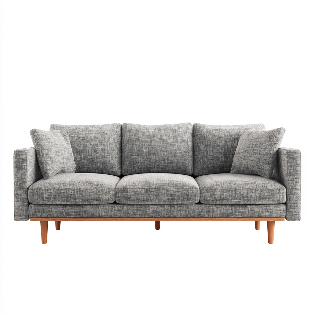 Questo divano lineare in tessuto grigio offre un perfetto equilibrio tra eleganza nordica e comfort quotidiano. Le linee pulite, la struttura snella e le gambe in legno naturale rendono questo divano un complemento ideale per soggiorni dal gusto moderno e minimalista.