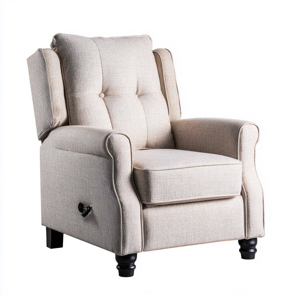 Questa poltrona reclinabile in tessuto beige combina un'estetica classica con il comfort quotidiano, offrendo una seduta accogliente ideale per il soggiorno. Il profilo elegante e le linee morbide si integrano facilmente in diversi stili d'arredo.