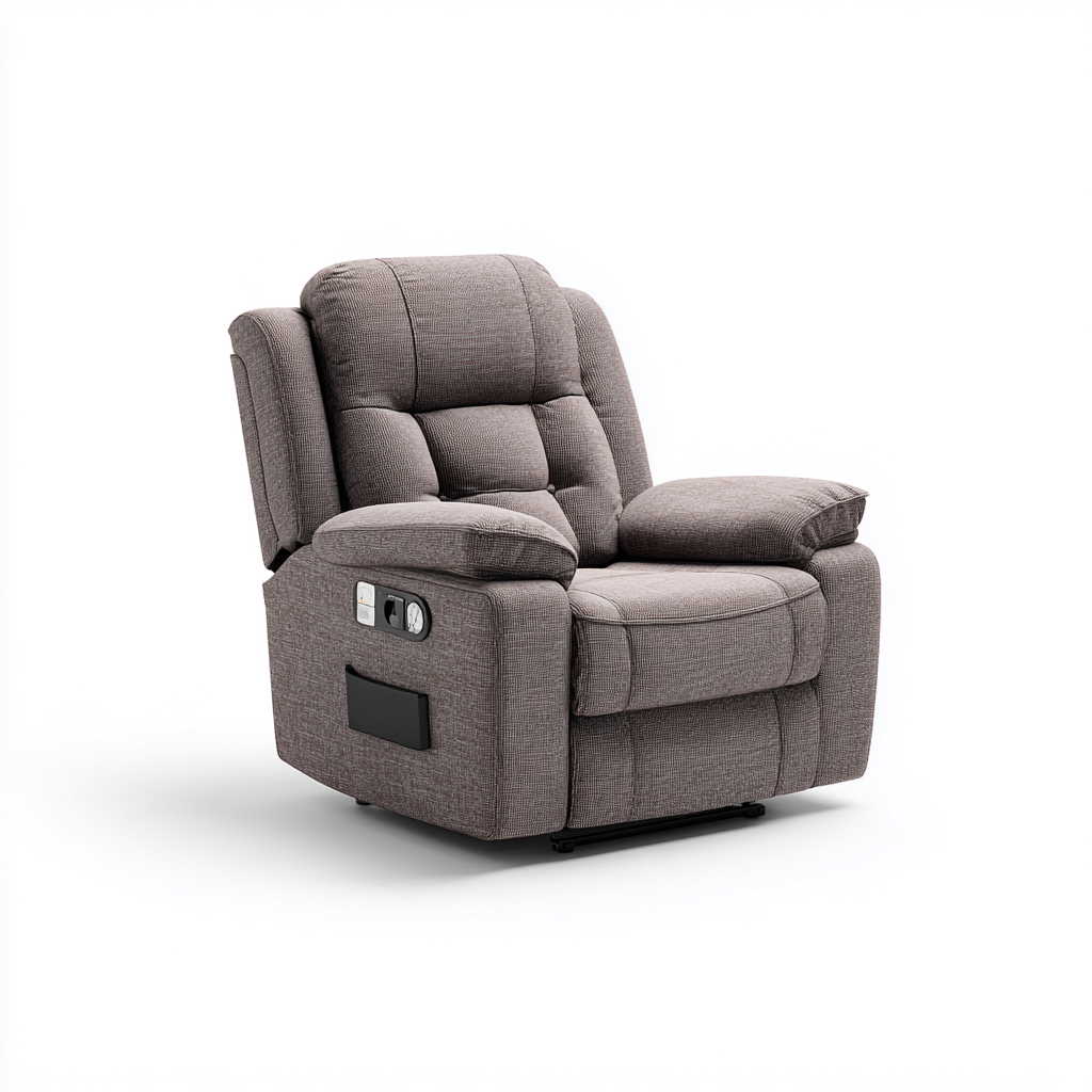Questa poltrona reclinabile in tessuto grigio offre un comfort elevato grazie all'imbottitura soffice e alla struttura progettata per il relax quotidiano nel soggiorno. Il design moderno la rende adatta a diversi ambienti domestici.