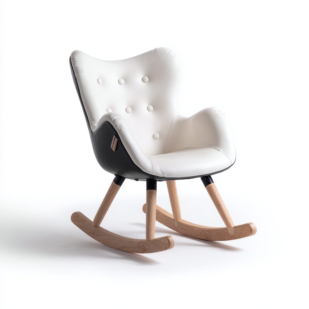 Questa sedia a dondolo in similpelle unisce estetica moderna e comfort quotidiano, creando uno spazio ideale per il relax nel soggiorno. La forma avvolgente e l'oscillazione fluida contribuiscono a un'esperienza di seduta piacevole.