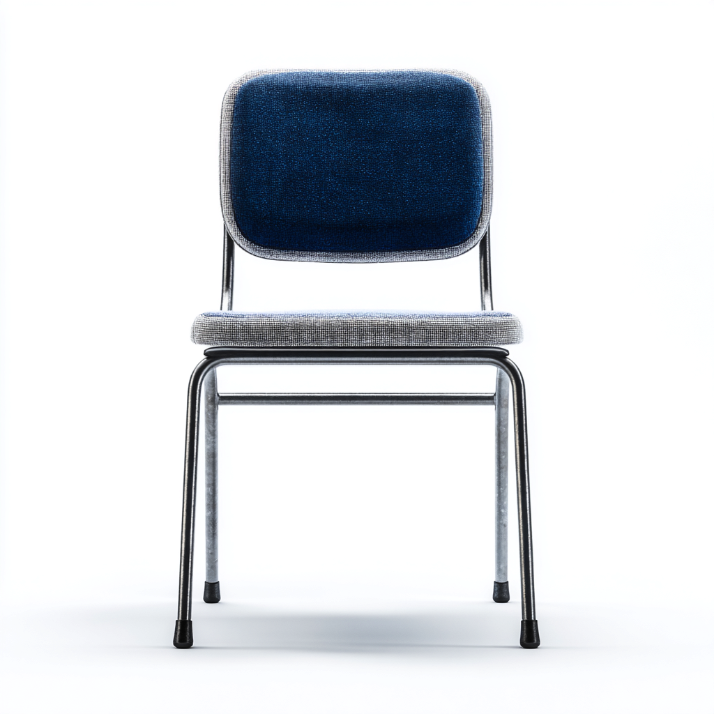 La struttura in metallo garantisce stabilità e resistenza, mentre il rivestimento in tessuto blu e grigio aggiunge un tocco moderno e piacevole alla vista. I materiali sono selezionati per mantenere comfort e durabilità nel tempo quando utilizzati in aree esterne protette.