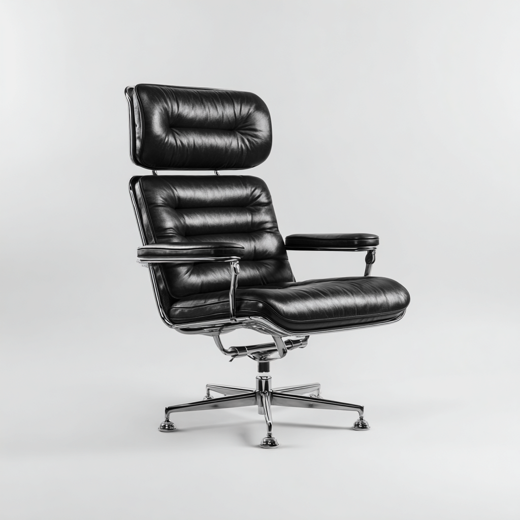 Il rivestimento in pelle nera è morbido e resistente, mentre la struttura in metallo cromato garantisce stabilità e durata. Le imbottiture generose su seduta, schienale e poggiatesta migliorano il sostegno complessivo.